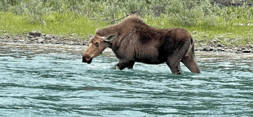 There was the cow moose standing in the river, just a few canoe lengths from us as we floated by. With her ears laid back, hair bristling on her back and grunting displeasures she refused to run. She likely had a calf hidden in the riparian willows.