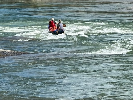 After a day of riding the river’s fast current, our chairs reunited in a ragged circle after the tents were set up. With a campfire calling us to order we had a celebratory nip as we reflected on the day.